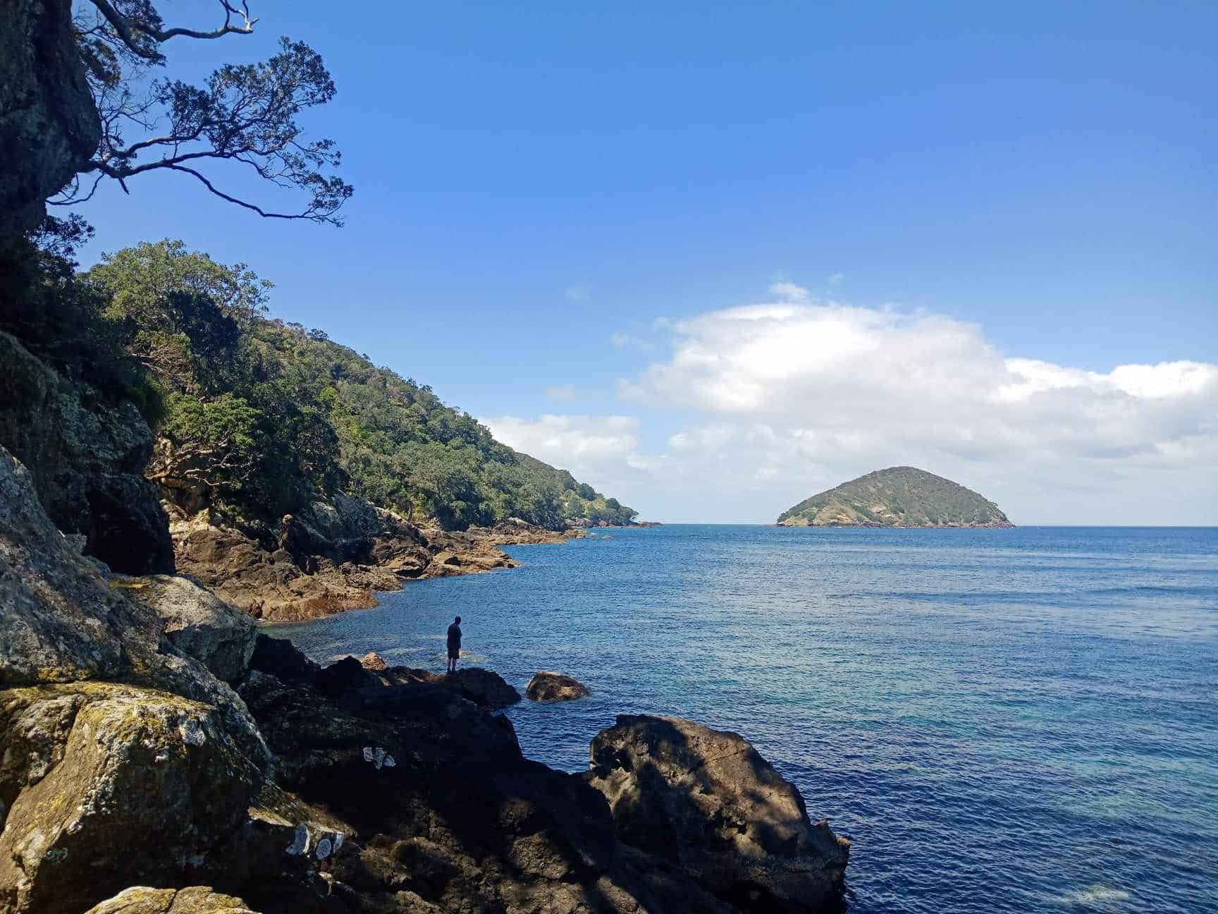 Just 1km along Cape Barrier Road. Follow the track, which is steep in places, through the bush to a secluded Dolphin Bay perfect for fishing. For Ross Bay take the right fork 25 minutes along the track, great for snorkelling after a rocky descent.
