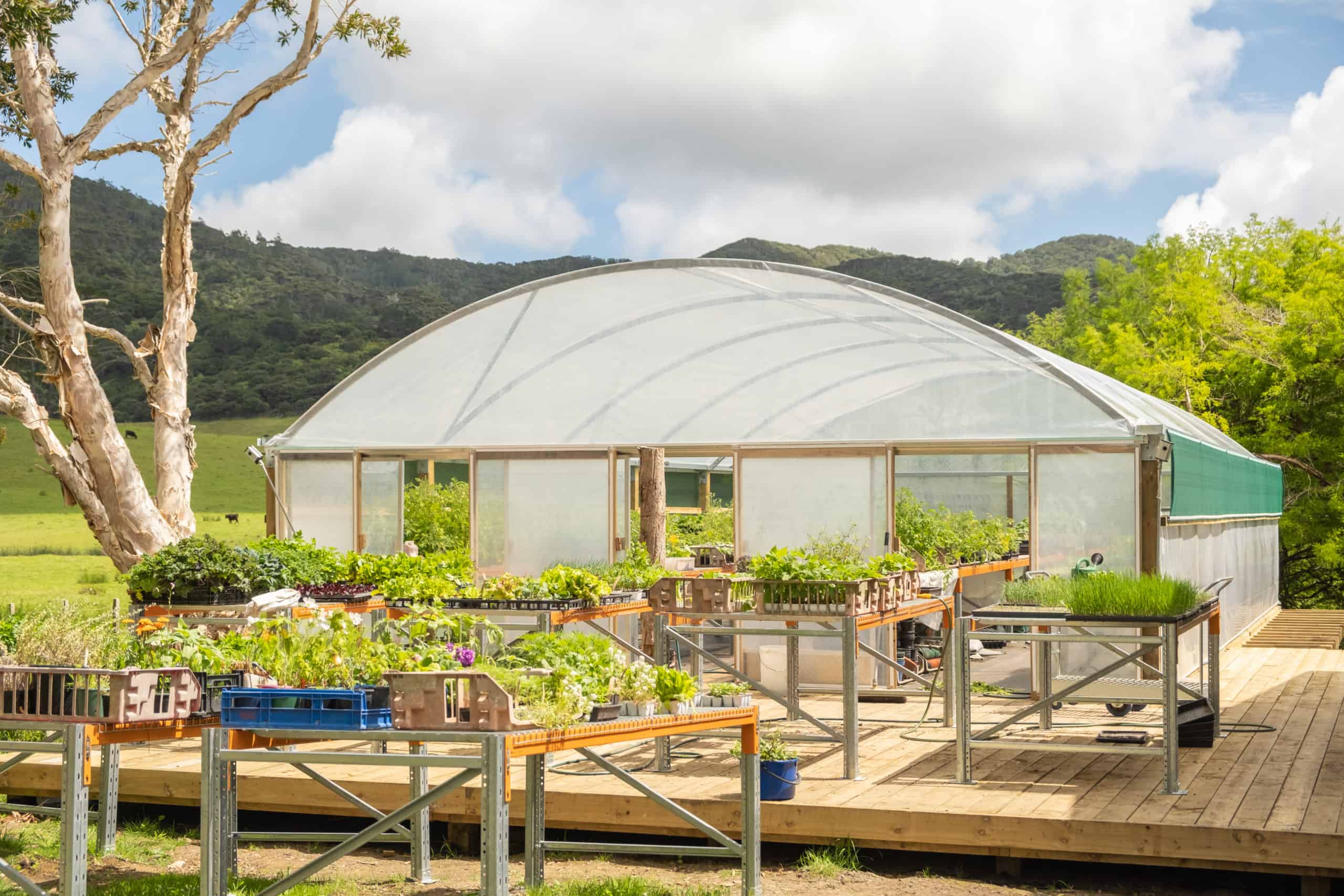 You can buy our produce and seedlings at the weekly Saturday market at Stonewall Village in Tryphena from August through to December. Our microgreen salad mix is available at local shops and cafes.